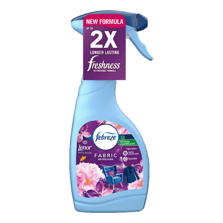 Febreze Fabric Refresher with Odourclear technology fights tough lingering odours in your hard-to-wash items, leaving a fresh scent for at least 2 hours (on fabrics).