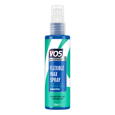 VO5 Flexible Wax Spray is a wax based spray that gives you instant texture and grip. It will give you the messy casual look with no frizz and no flakes. It is also easy to work in and then wash out.