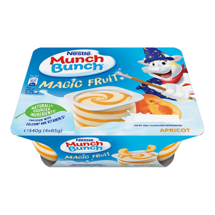 Munch Bunch Magic Fruit is a new range of creamy fromage frais with unique and tasty swirls of fruit, finely pureed so that kids love it. Made with naturally-sourced ingredients*, fortified with calcium* and vitamin D*, naturally delicious!
