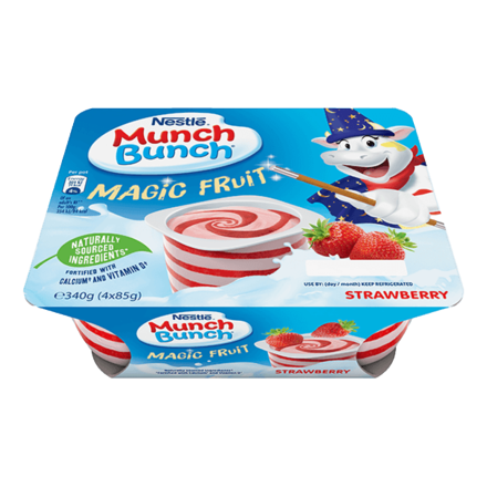 Munch Bunch Magic Fruit is a new range of creamy fromage frais with unique and tasty swirls of fruit, finely pureed so that kids love it. Made with naturally-sourced ingredients*, fortified with calcium* and vitamin D*, naturally delicious!