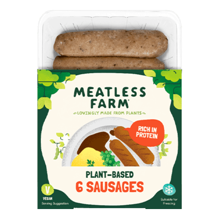 - Meatless Farm Plant-Based Sausages x6, 300g (£2.50)
