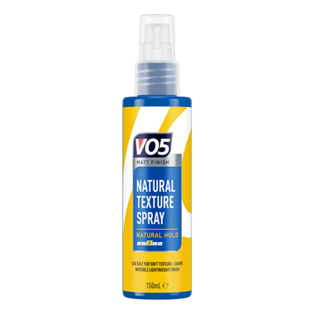 VO5 Natural Texture Spray gives you effortless style with lightweight hold. Contains Sea salt to provide the natural texture and more importantly is easy to work in and then wash it out.