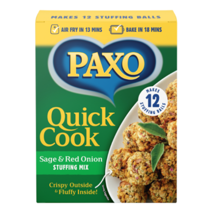 - PAXO QUICK COOK SAGE & RED ONION STUFFING 150G (£2.65)