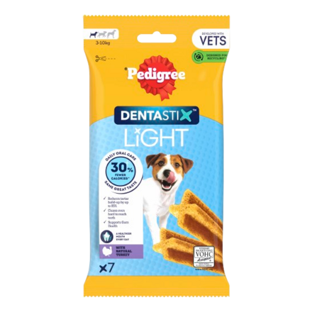 - Pedigree® Dentastix™ Light Sticks Dental Chews Small Dog Treats x7 (£1.30)