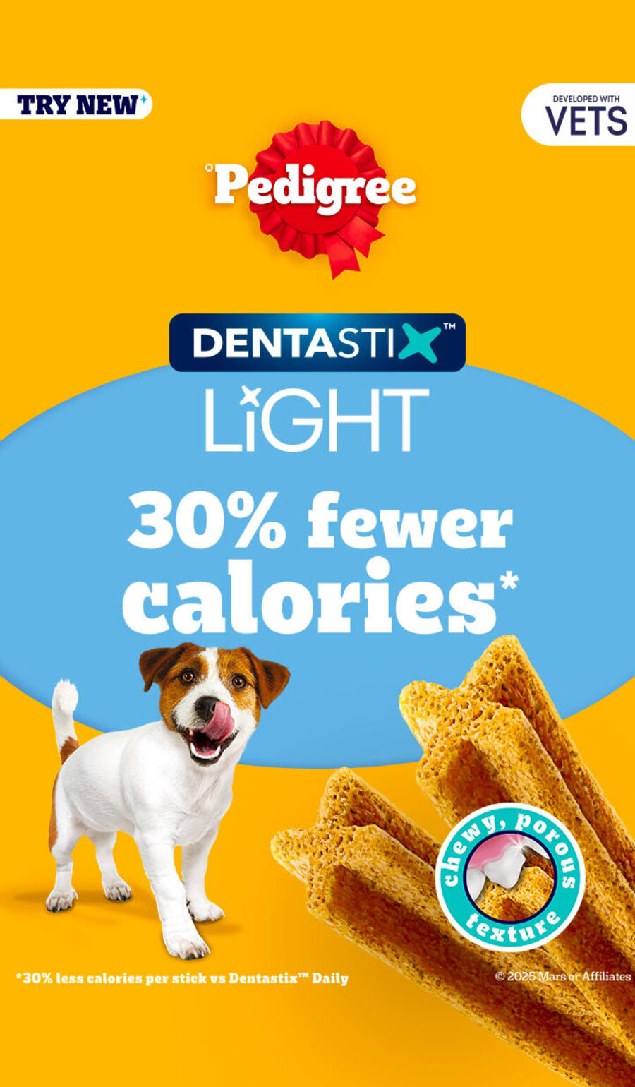 - Pedigree® Dentastix™ Light Sticks Dental Chews Medium Dog Treats x5 (£1.30)