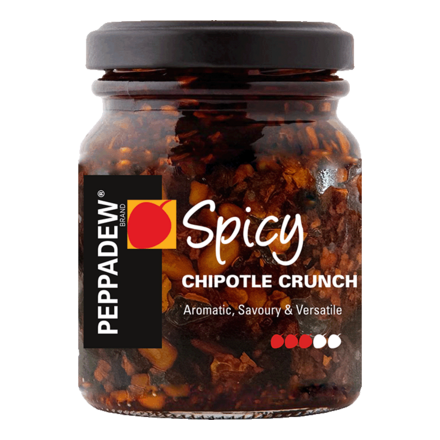 Spicy Chipotle Crunch – a perfect blend of smokiness and heat. Elevate tacos, burgers, salads, pasta, pizza and more with this flavourful and satisfying crunch. Spice up your meals with the intense and smoky goodness of Spicy Chipotle Crunch.