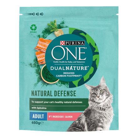 - PURINA ONE® DualNature® Adult Salmon & Spirulina 650g (£6.60)