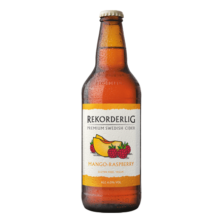Rekorderlig Mango-Raspberry Cider is sweet and tropical with the intense fragrance and flavour of ripe mango with a hint of wild raspberries. Best served cold over ice with a wedge of lemon. The newest arrival in Rekorderlig's fruit cider range.
