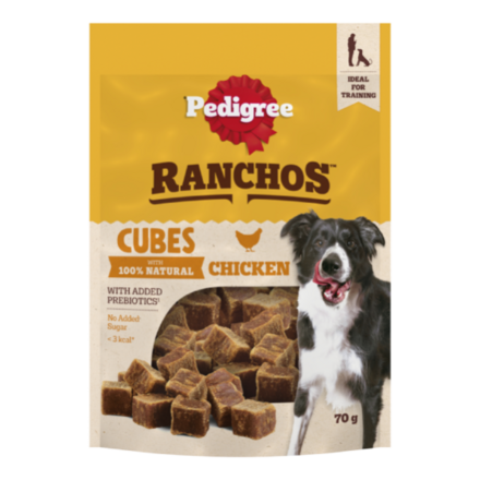 - Pedigree® Ranchos™ Reward Chewy Cube Dog Treats with Chicken 70g (£2.50)