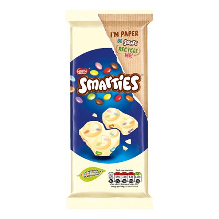 Yummy smooth milk chocolate SMARTIES® in a delightful chocolate bar with recyclable Paper Packaging!