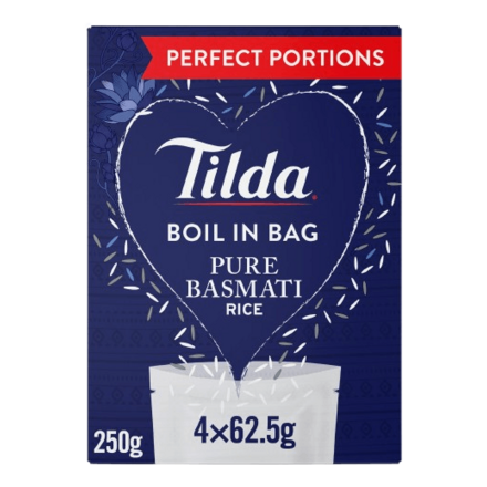 - Tilda Boil in the Bag Pure Basmati Rice 4x62.5g (£2.25)