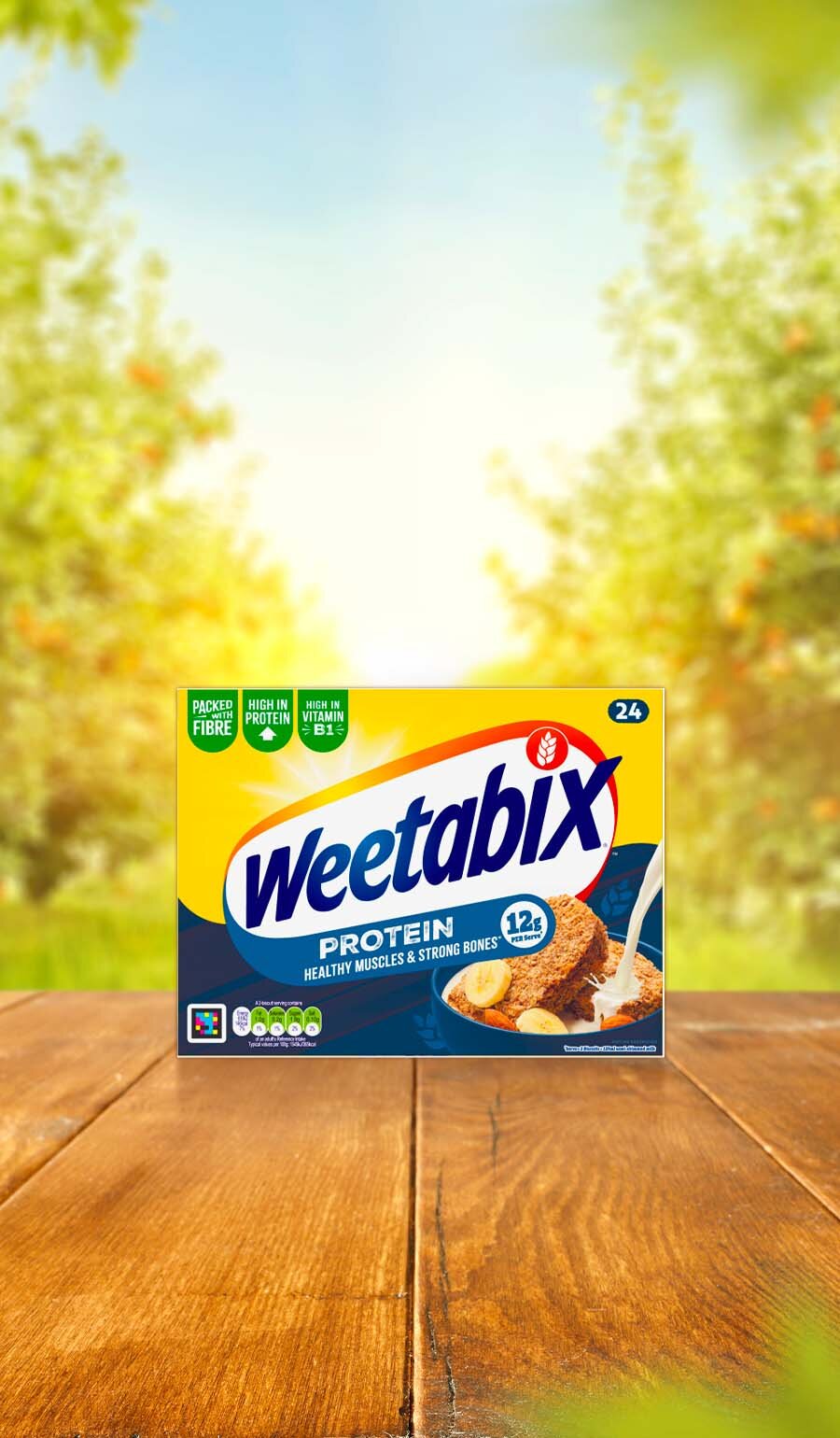 Fuel your day with Weetabix Protein – a high-protein breakfast made with plant-based goodness. Low sugar, low salt, packed with fibre and all the great taste of Weetabix with an extra boost of protein!